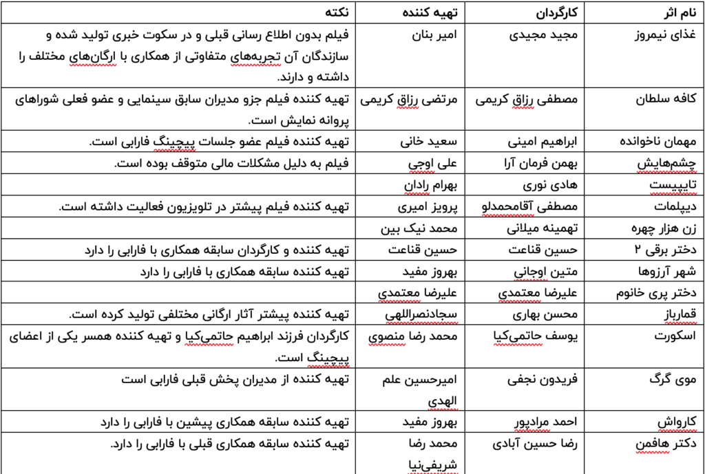 سینما مثبت: انتشار فهرست فعالیتهای تولیدی بنیاد سینمایی فارابی در سال ۱۴۰۴ همچنان با واکنشهای مختلف از سوی دست اندرکاران سینمای ایران مواجه شده و نشان میدهد اغلب فیلمسازانی که توفیق همکاری با فارابی را پیدا کردهاند افرادی هستند که پیشتر در همین چرخه همکاری حضور داشتهاند و یا در ارگانهای دیگر فیلمسازی کردهاند و کسی خارج از این چرخه وارد دایره بسته همکاری با فارابی نشده است.